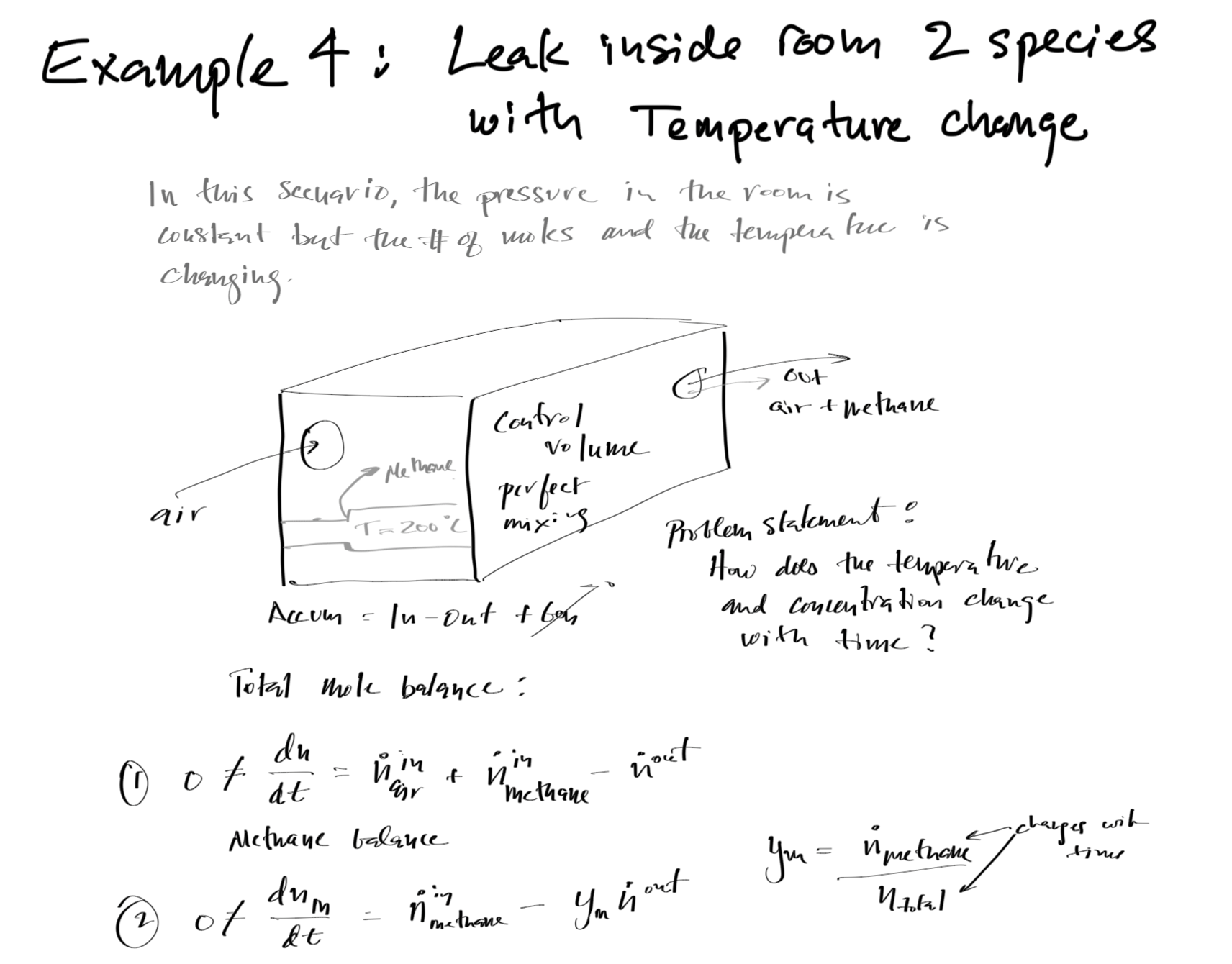 # air flow into room at 20C, methane flow into room at 200C, air/methane mixture leaves the room