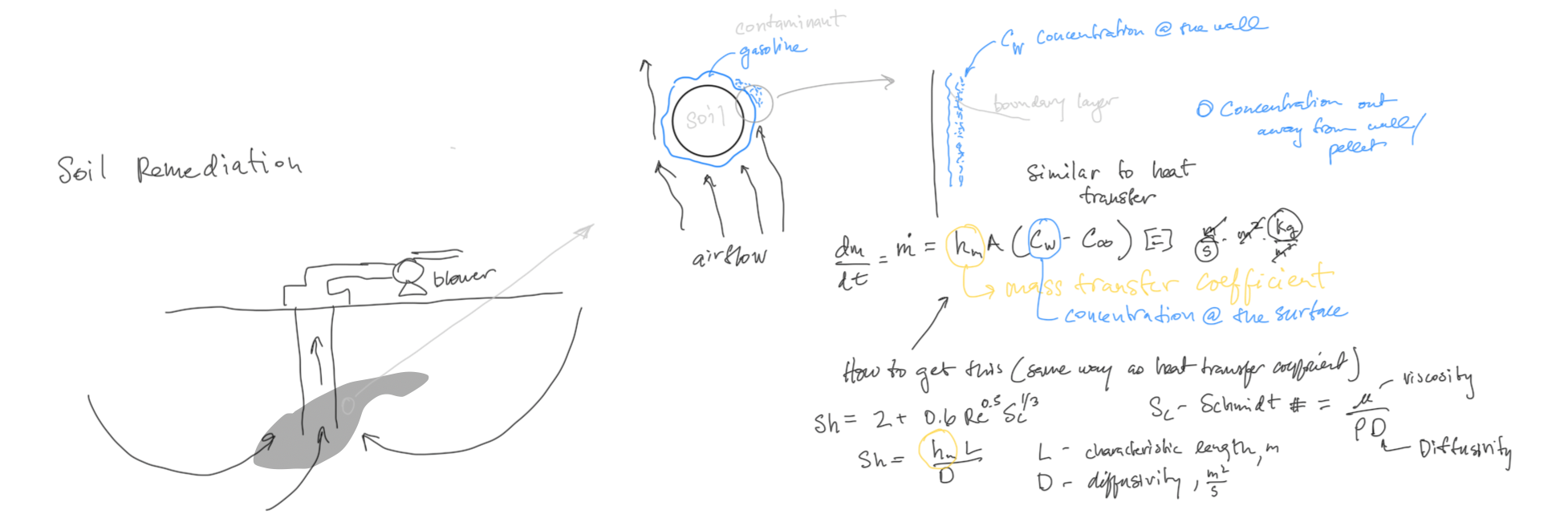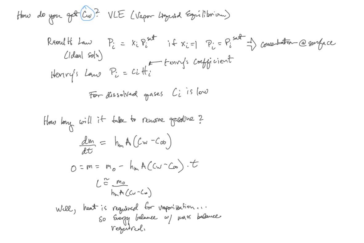 In previous discussions on environmental remediation, we have discussed ways in which material can be transferred from one location to another or that it can be broken down and then transferred. The rate of that transfer depends on the concentration immediately next to the surface and out in the middle of the fluid. Principles of vapor-liquid equilibrium (concentration next to the surface) and mass transfer are reviewed here.